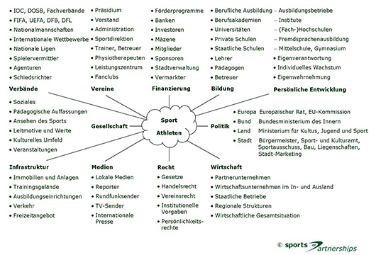 Mit der Professionalisierung und Kommerzialisierung des Sports wachsen mit der Aufmerksamkeit der Öffentlichkeit auch die Anforderungen an Vereine und Sportorganisationen, die Sportler und alle Beteiligten in diesem Umfeld enorm. Wie komplex Auseinandersetzungen auf diesem Gebiet sein können, zeigt die Darstellung der Anspruchsgruppen im Leistungssport: